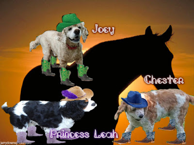 First, we hope every one is rested up from yesterday's Blogville Rodeo. What a great time that was! Here's a photo of my rip-roaring colleague Joseph (Joey dog) and me roping squirrels. Yee-ha! We'll be having barbecued squirrels for dinner tonight! Many thanks to our good friend Ruby for inviting us to participate in this event. Visit Ruby at rubytheairedalepup for more squirrel roping fun!