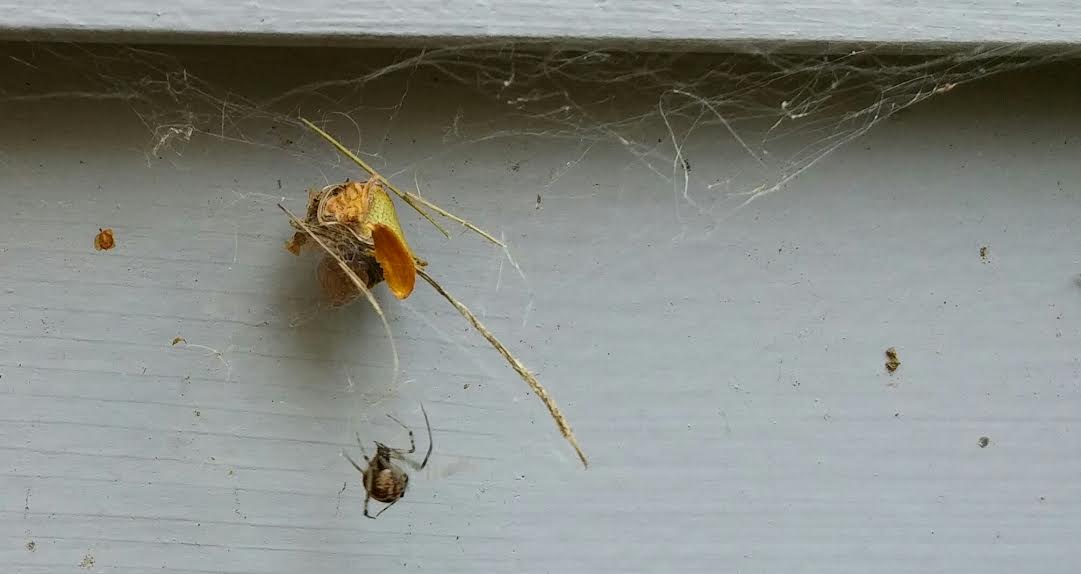 We do NOT like the spiders though Mom tries to leave them alone so they eat more damaging little critters.