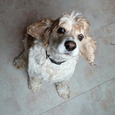 Here's a picture of our angel Joey dog, to whom we dedicate our Saturday Yum Yum posts, doing some professional food watching last year: